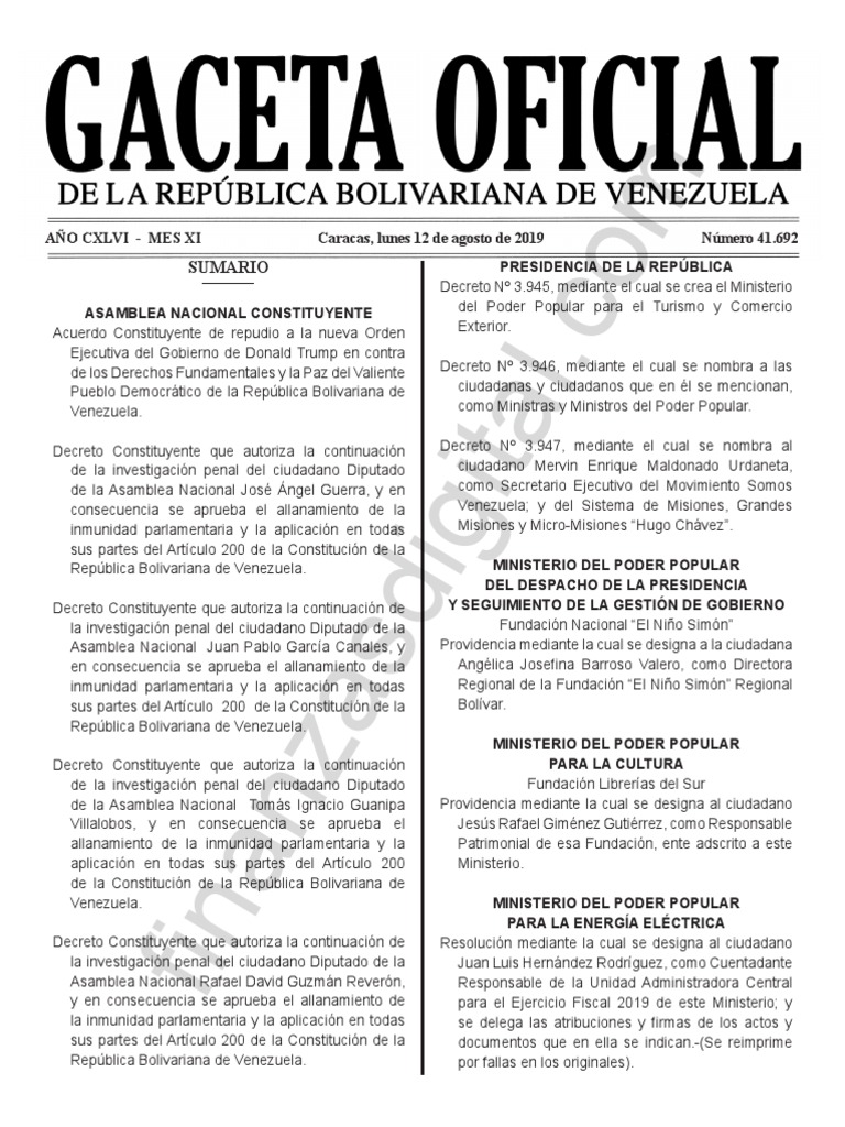 Decreto Constituyente que autoriza la continuación de Y SEGUIMIENTO DE LA GESTIÓN DE GOBIERNO