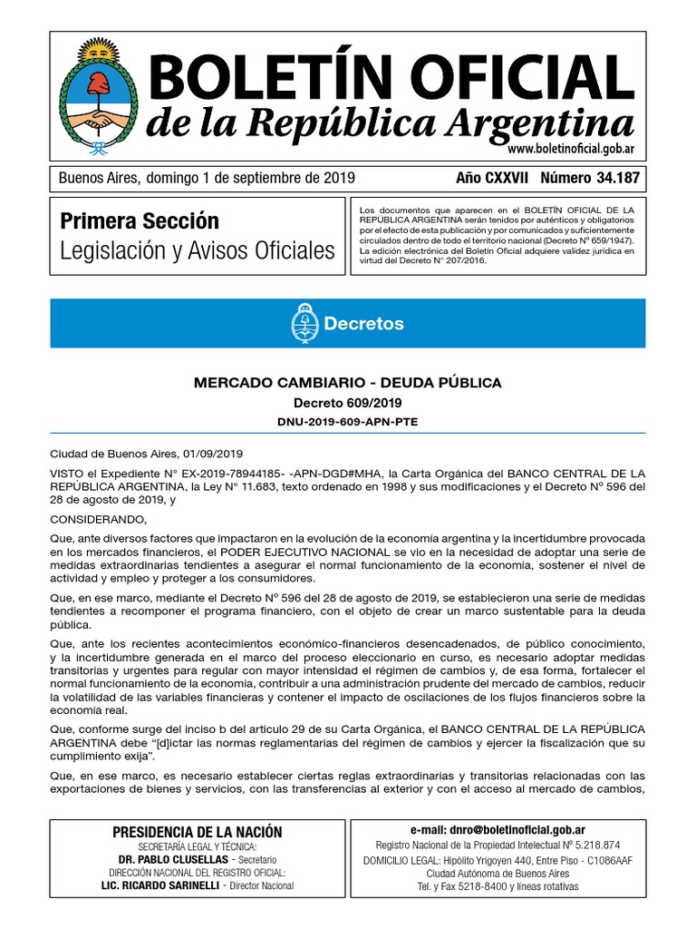 Boletín Oficial Nº 34.187 - Primera Sección 2 Domingo 1 de septiembre de 2019