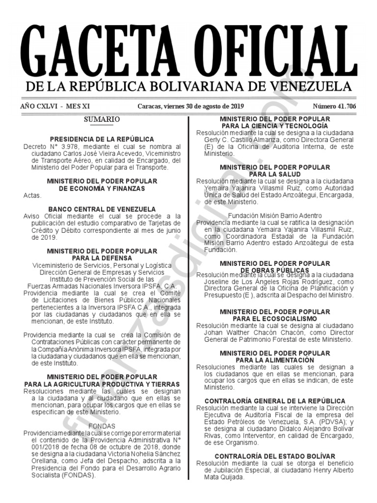 la ciudadana y ciudadanos que en ella se mencionan, MINISTERIO DEL PODER POPULAR