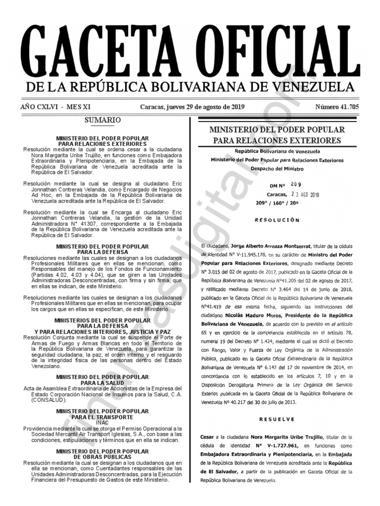 AÑO CXLVI - MES XI Caracas, jueves 29 de agosto de 2019 Número 41.705
