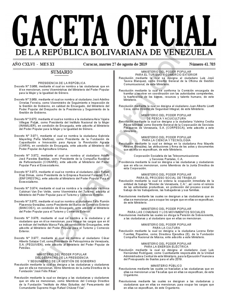 Decreto N° 3.971, mediante el cual se nombra la ciudadana Gabriela
