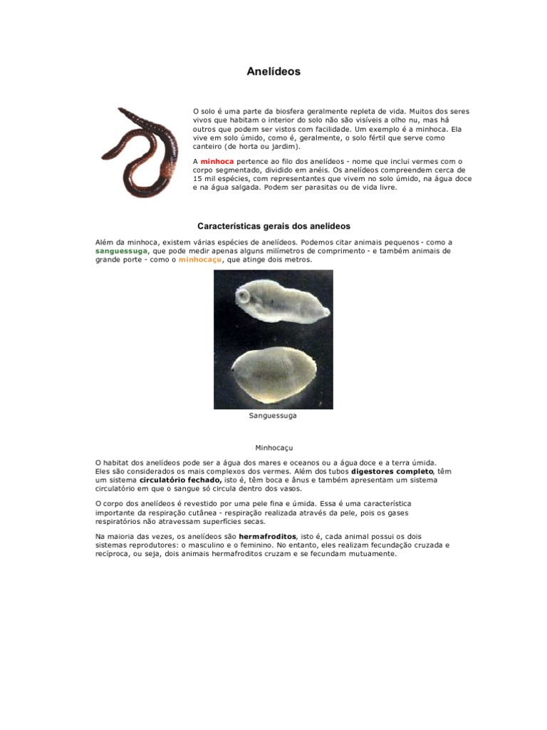 corpo segmentado, dividido em anéis. Os anelídeos compreendem cerca de