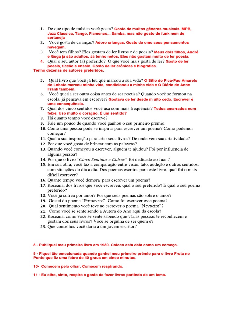 17. Roseana, dos livros que você escreveu, qual o seu preferido? E qual o seu poema