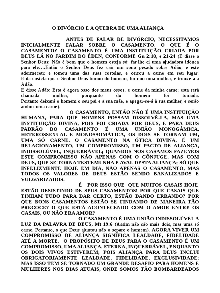 DIVÓRCIO, É A QUEBRA DA ALIANÇA, É UMA TRAIÇÃO AMARGA, É
