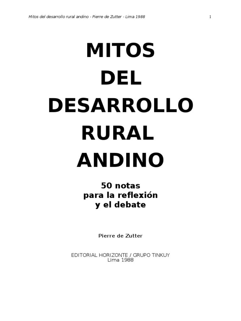 Mitos del desarrollo rural andino - Pierre de Zutter - Lima 1988 3