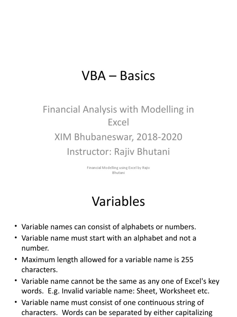 • Variable name cannot be the same as any one of Excel's key