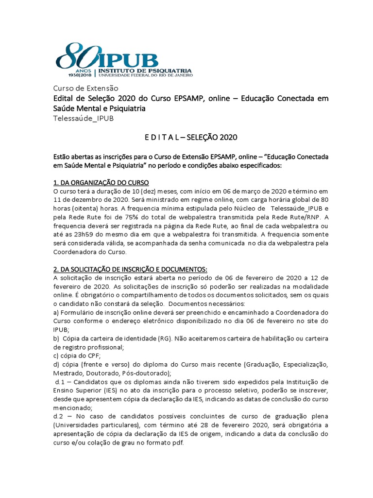 Edital de Seleção 2020 do Curso EPSAMP, online – Educação Conectada em