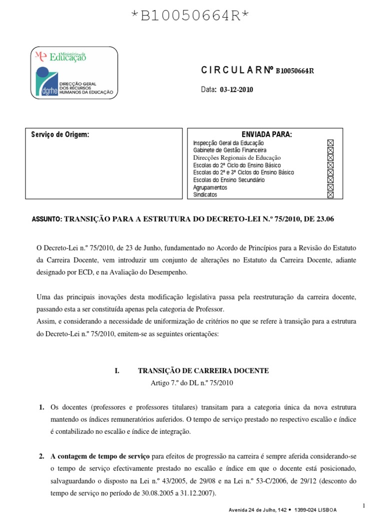 ASSUNTO: TRANSIÇÃO PARA A ESTRUTURA DO DECRETO-LEI N.º 75/2010, DE 23.06