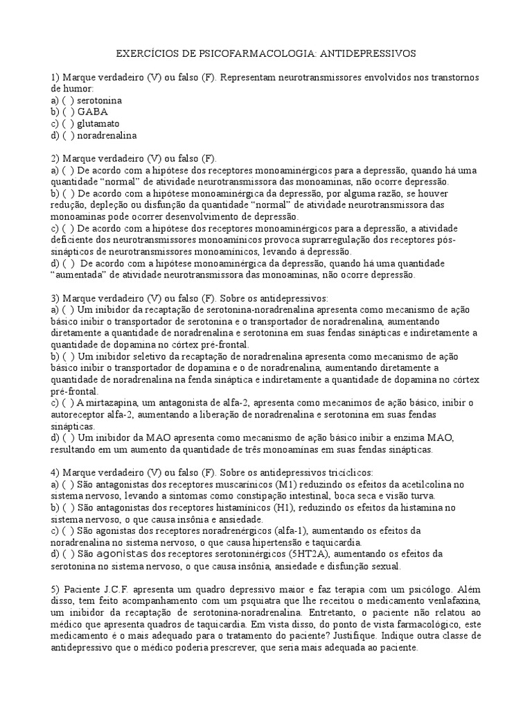 5) Paciente J.C.F. apresenta um quadro depressivo maior e faz terapia com um psicólogo. Além
