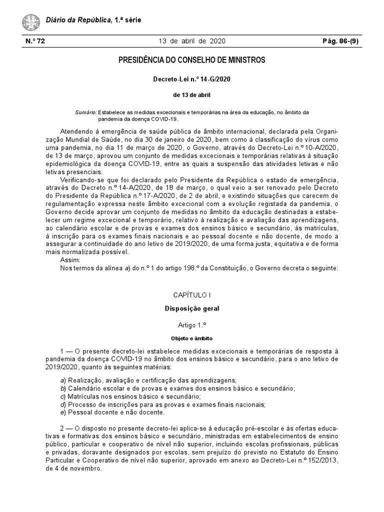 tações, o disposto no Estatuto do Aluno e Ética Escolar, aprovado pela Lei n.º 51/2012, de 5 de