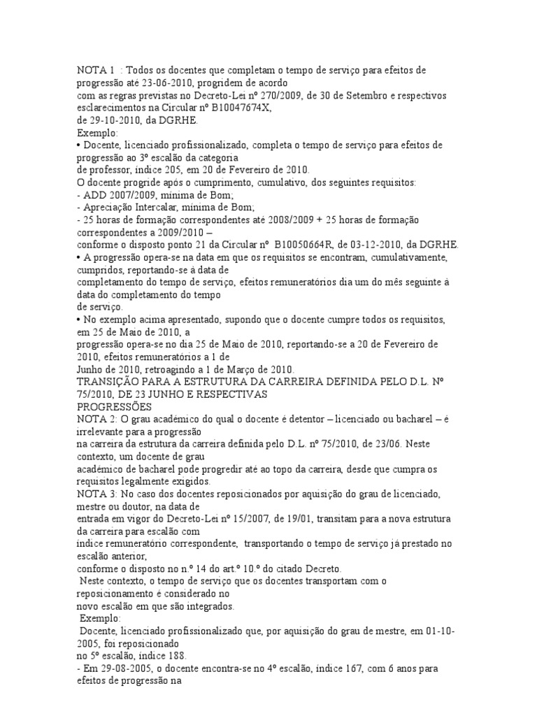 • Em 24-06-2010, transita para o 6.º escalão, índice 245, com 3 anos 300 dias.