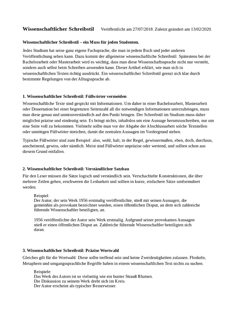 Wissenschaftlicher Schreibstil Veröffentlicht am 27/07/2018. Zuletzt geändert am 13/02/2020.