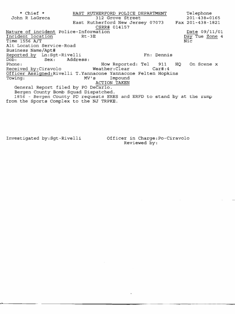 The original police report on the dancing israelis