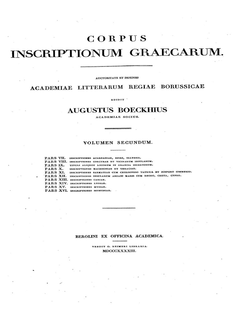 Corpus Inscriptionum Graecarum. Vol. II Pt. 7 - Pt. 12 Sec. VI. Bockh. BOA. 1843.