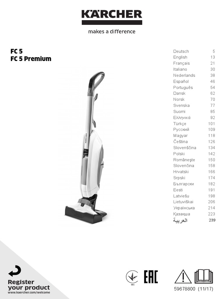 Өндірушімен ұсынылған тазалағыш жəне Электр кернеуі 220-240 V