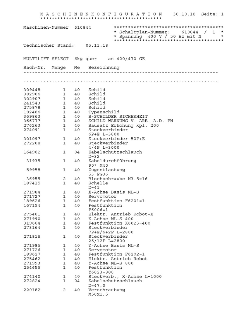 M A S C H I N E N K O N F I G U R A T I O N 30.10.18 Seite: 2