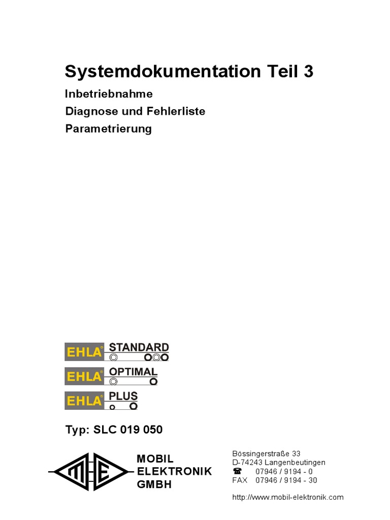 Die Systemdokumentation EHLA (“Elektronisch-Hydraulische Lenk-Anlage”) besteht aus drei Teilen. Der