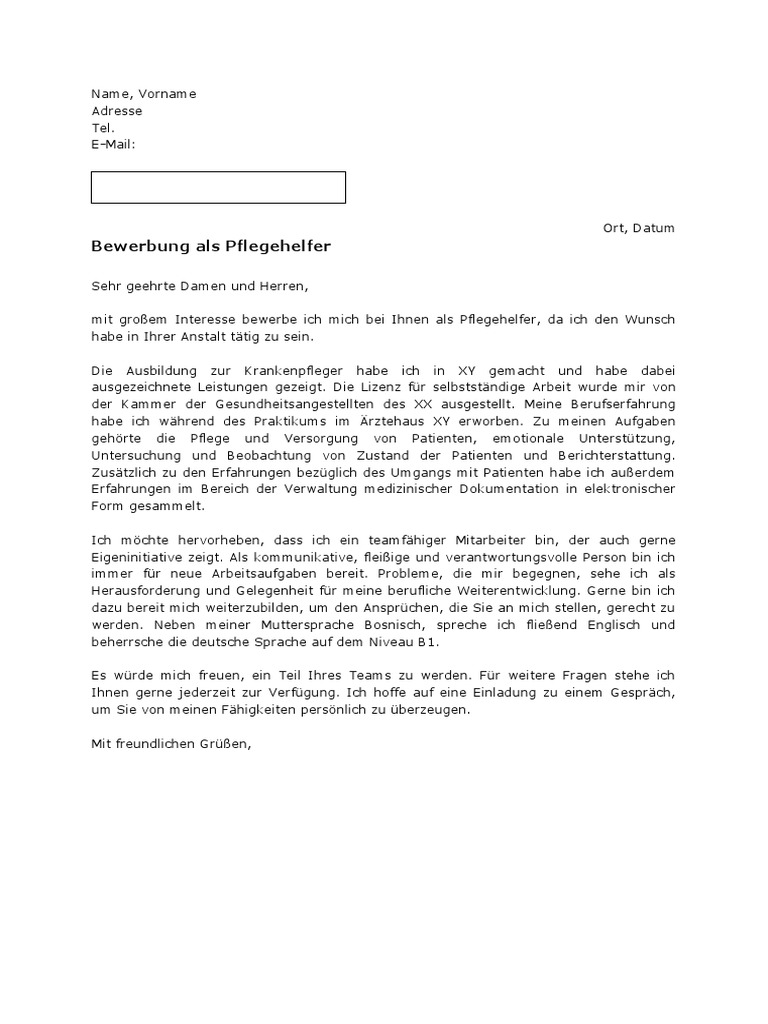 mit großem Interesse bewerbe ich mich bei Ihnen als Pflegehelfer, da ich den Wunsch