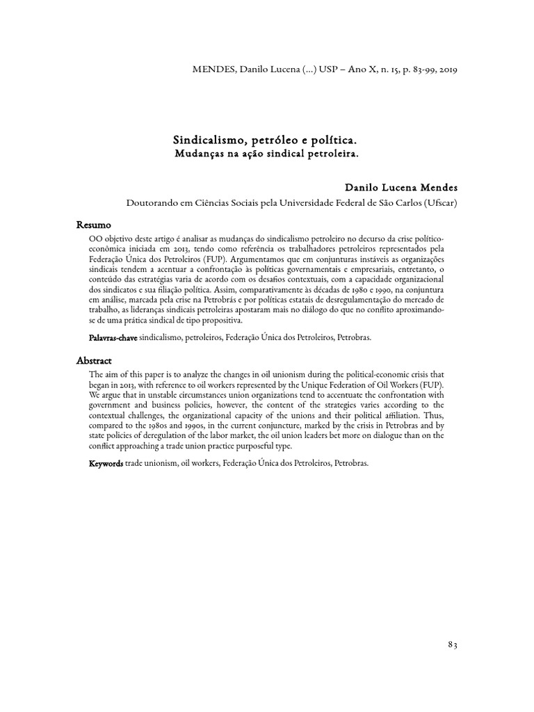 MENDES, Danilo Lucena (...) USP – Ano X, n. 15, p. 83-99, 2019