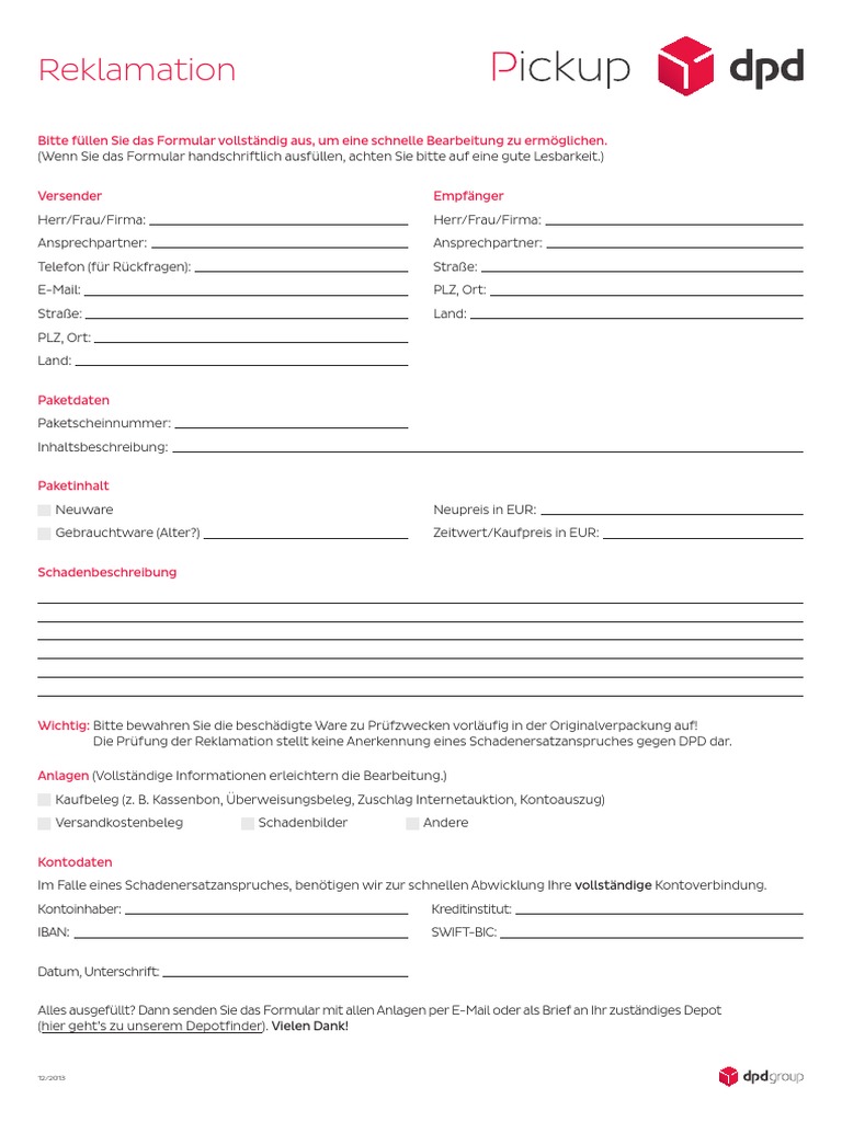 Im Falle eines Schadenersatzanspruches, benötigen wir zur schnellen Abwicklung Ihre vollständige Kontoverbindung.