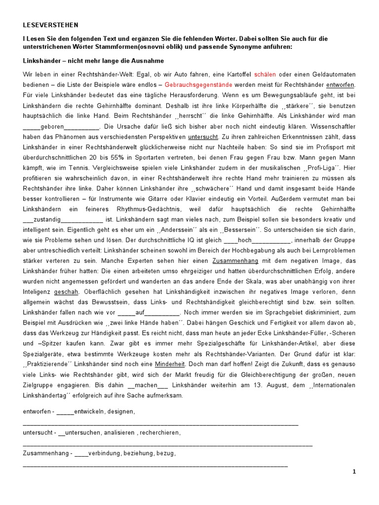 ___zustandig____________ ist. Linkshändern sagt man vieles nach, zum Beispiel sollen sie besonders kreativ und