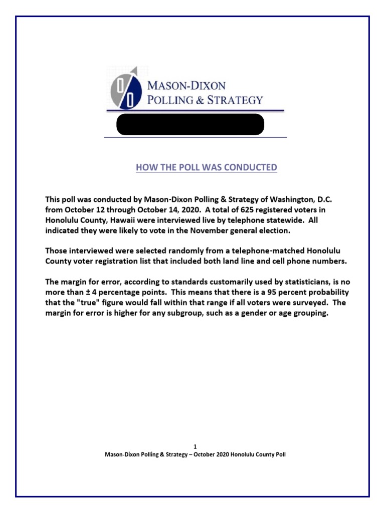 Mason-Dixon Polling & Strategy – October 2020 Honolulu County Poll