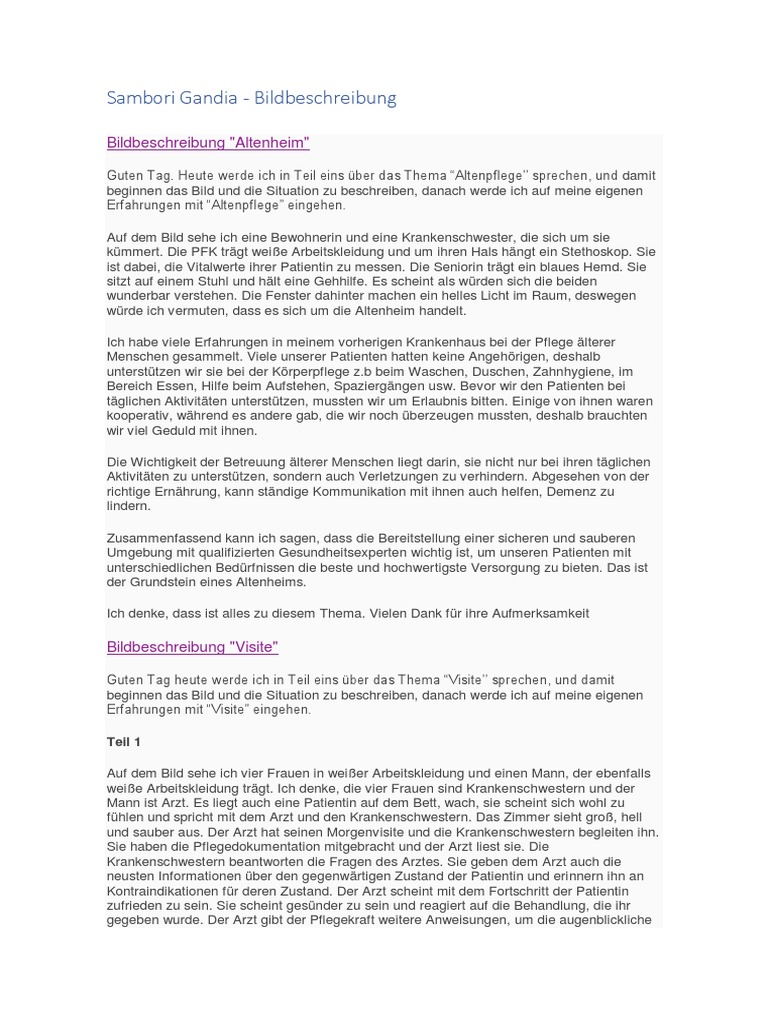 Ich habe persönlich viel Erfahrungen in der Altenpflege machen können und kann sagen,