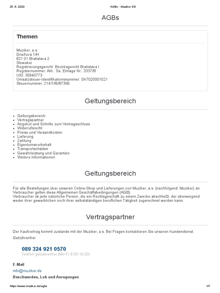 25. 6. 2020 AGBs - Muziker DE