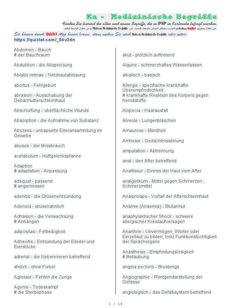 Sie können durch Quizlet App besser lernen, dann suchen Sie nach Mohsen Medizinische Begriffe oder unter: