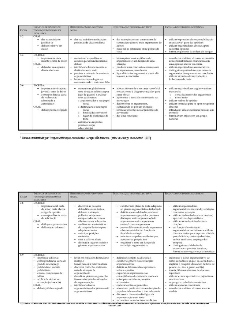 − ensaio, composição de argumentação − explorar os argumentos e as reportado