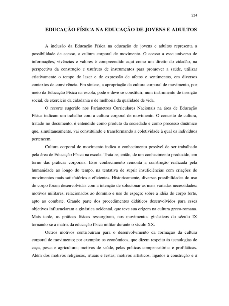 A inclusão da Educação Física na educação de jovens e adultos representa a