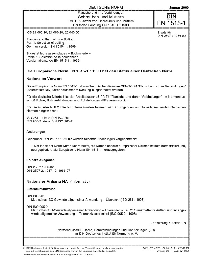 Diese Europäische Norm EN 1515-1 ist vom Technischen Komitee CEN/TC 74 "Flansche und ihre Verbindungen"