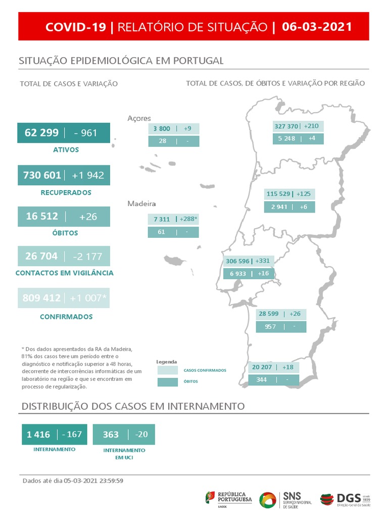 A 16 de novembro de 2020 houve uma atualização do sistema tecnológico de análise de dados provenientes do SINAVE.