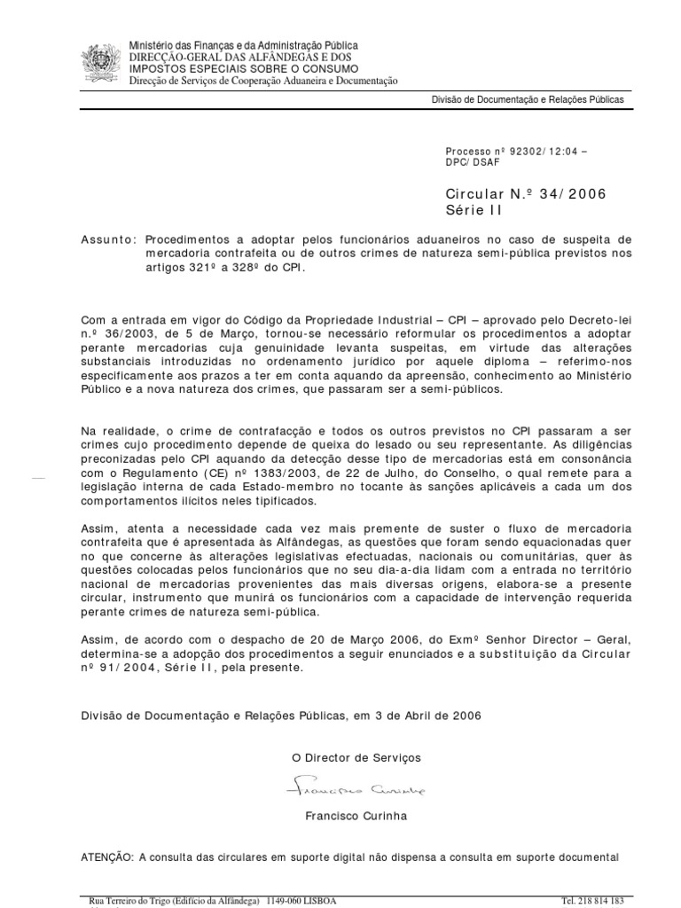 Art. 1.º do Regulamento (CE) n.º 1383/2003, de 22 de Julho, do Conselho e art. 319.º, do CPI