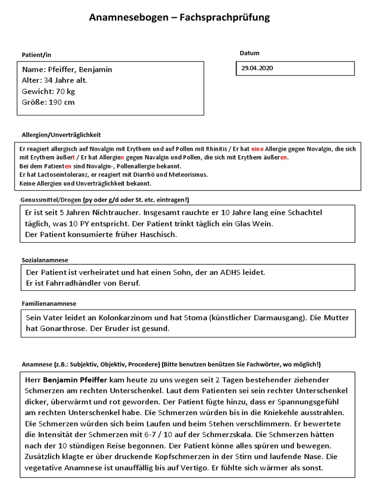 Anamnesebogen – Fachsprachprüfung