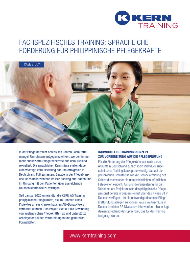 Deutschkenntnisse zu verfügen. Teilnahme am Projekt musste das philippinische Pflege