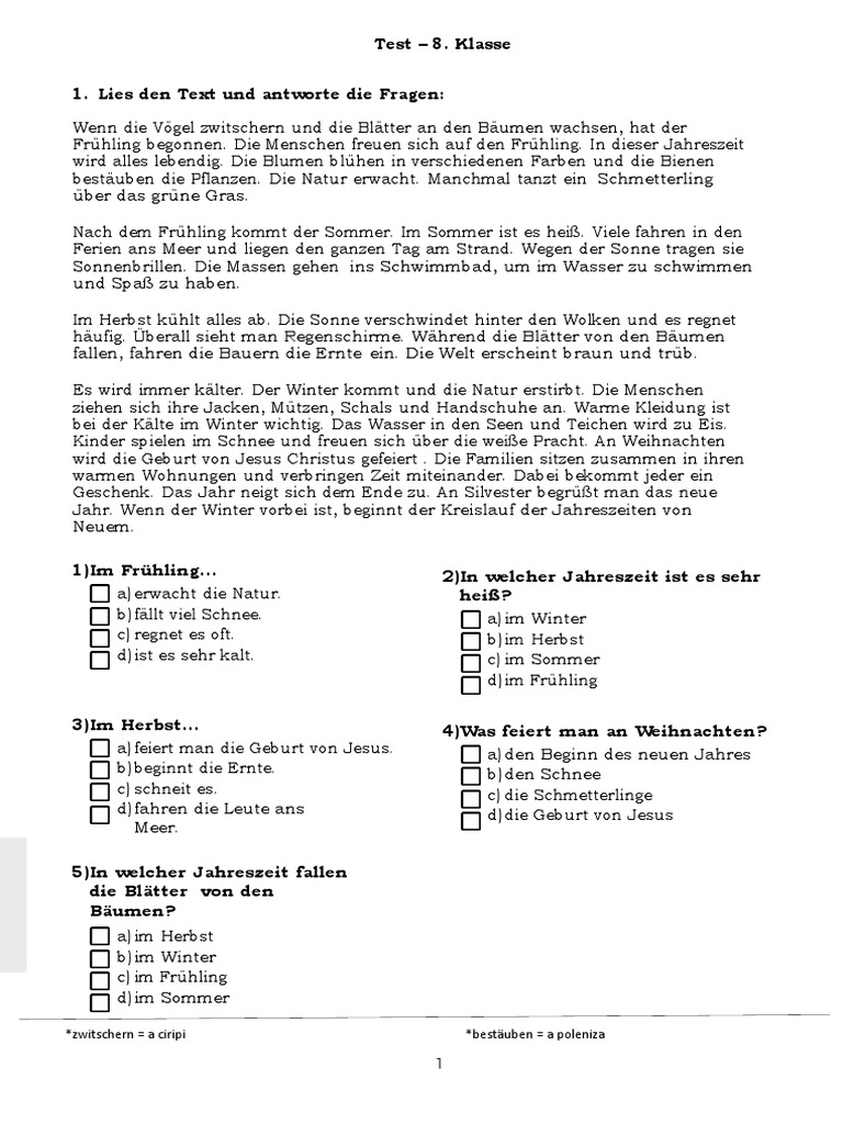 1)Im Frühling... 2)In welcher Jahreszeit ist es sehr