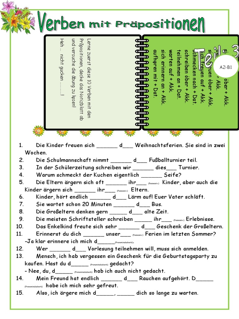 1. Die Kinder freuen sich ______ d___ Weihnachtsferien. Sie sind in zwei