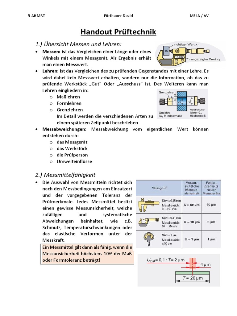 Lehren: ist das Vergleichen des zu prüfenden Gegenstandes mit einer Lehre. Es