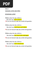 3. Beschwerden, weh, meinen, wie, seid, machen, arbeite, verstehe, Überweisung, brauche, Krankmeldung, nehmen,