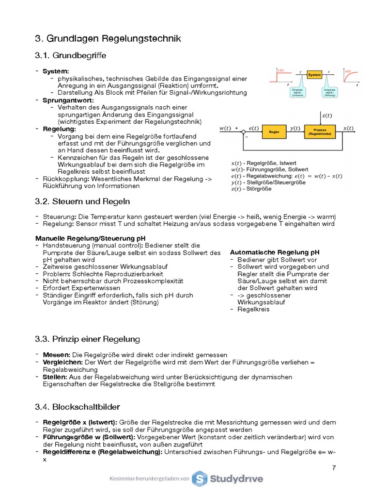 - Störgröße z: Größe die durch Änderung (Äußere Einflüsse) die Regelgröße beeinflusst