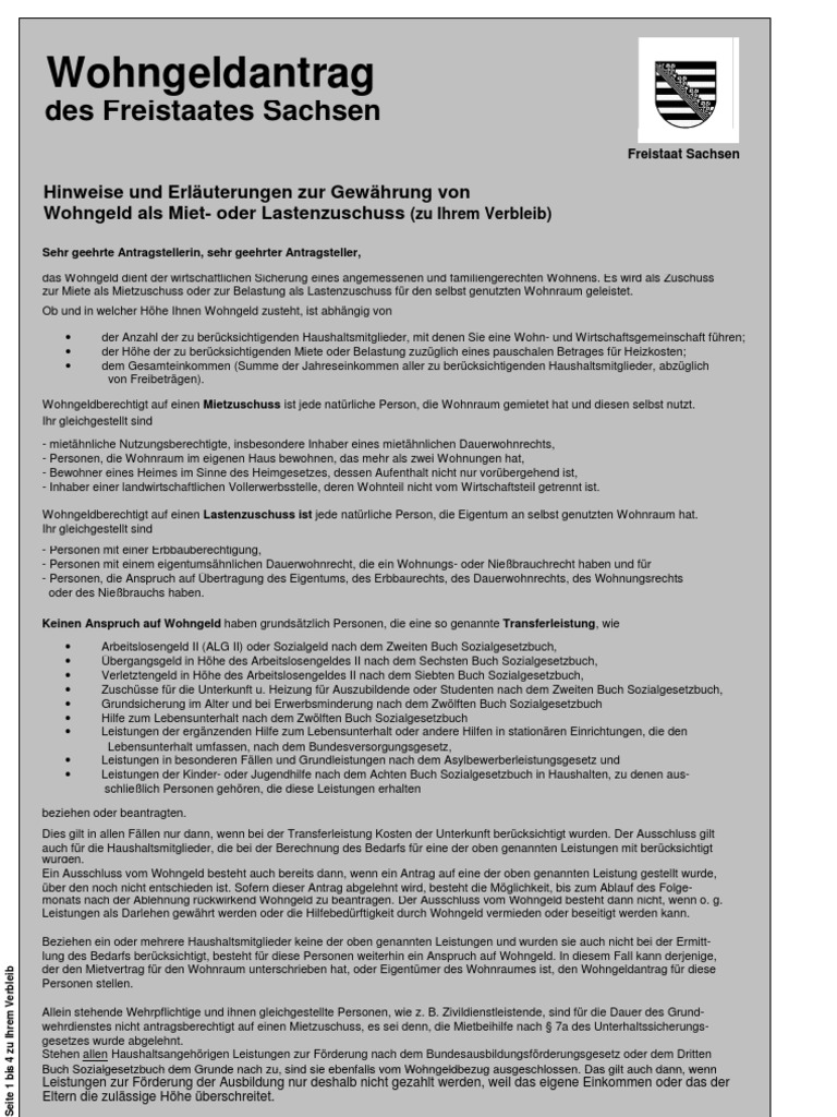Der Wohngeldantrag wird gestellt als: Freistaat Sachsen