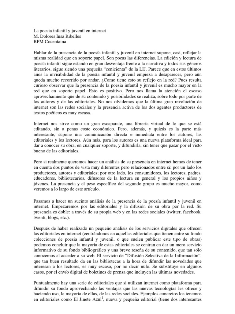 frecuencia libros de poesía infantil, y que tienen una escasa presencia en internet, más