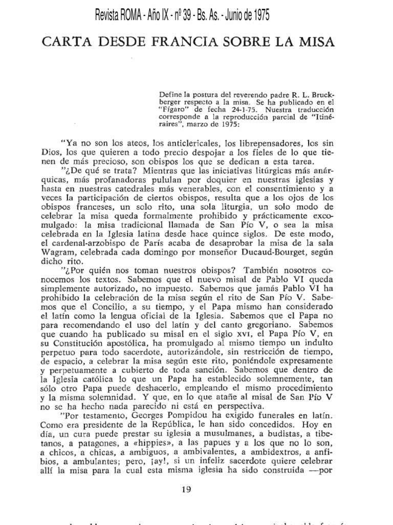 CARTA DESDE FRANCIA SOBRE LA MISA