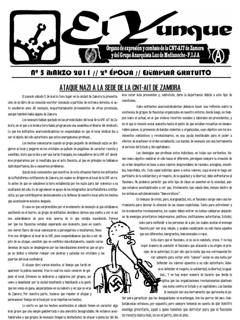 Los neonazis habían quedado en las proximidades del local de la CNT-AIT de Za- pos como el actual, en el que vivimos recortes sociales y laborales sin precedentes, y