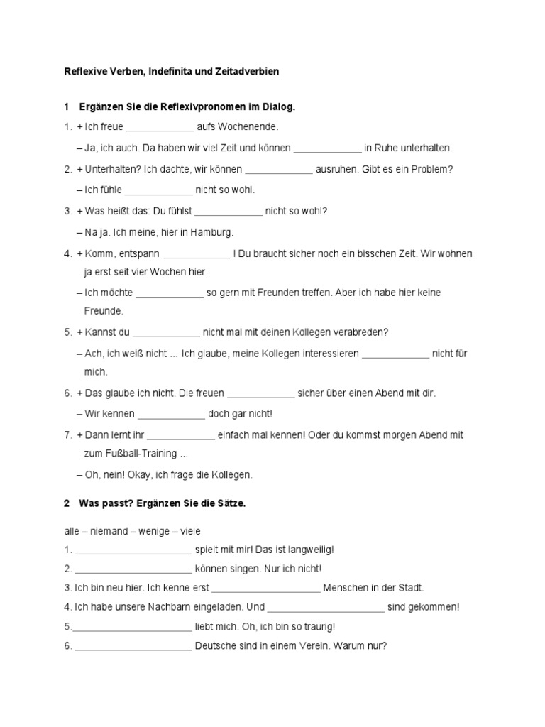 Reflexive Verben, Indefinita und Zeitadverbien