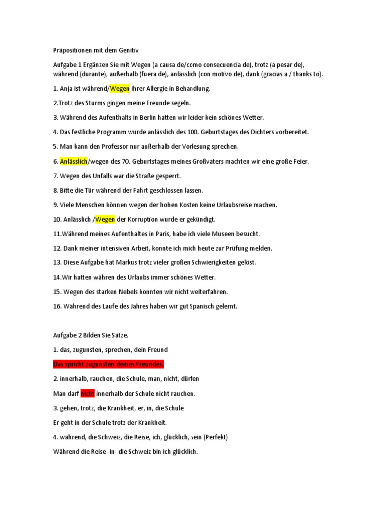 Aufgabe 1 Ergänzen Sie mit Wegen (a causa de/como consecuencia de), trotz (a pesar de),