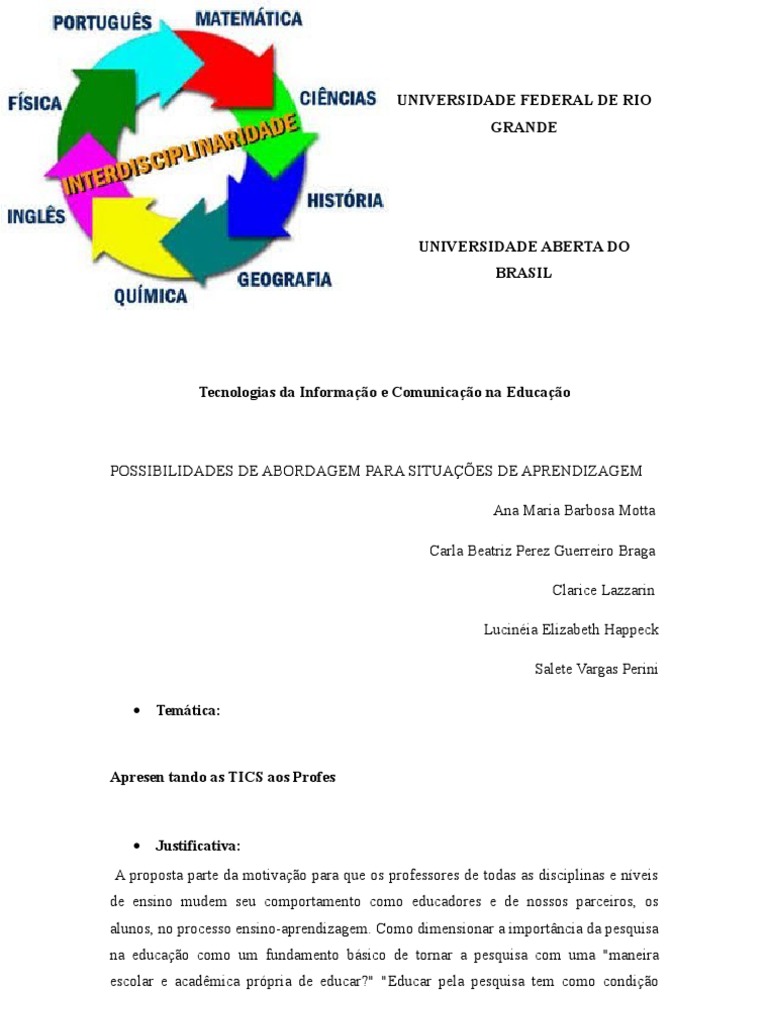 relação ao uso das Tics na educação e que não se percebe nenhum