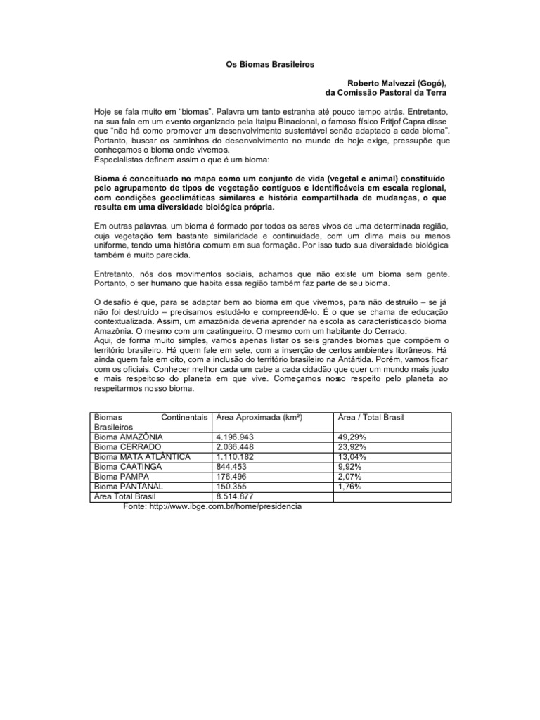 Hoje se fala muito em ³biomas´. Palavra um tanto estranha até pouco tempo atrás. Entretanto,