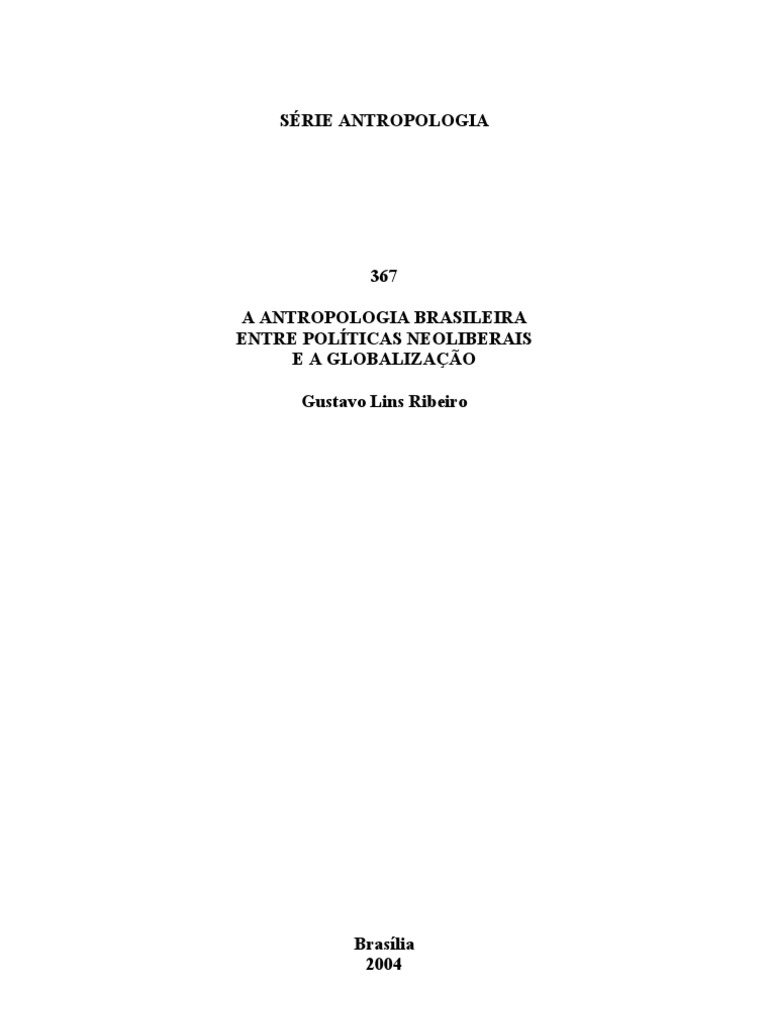 Ribeiro (orgs.), O Campo da Antropologia no Brasil. Rio de Janeiro/Brasília,